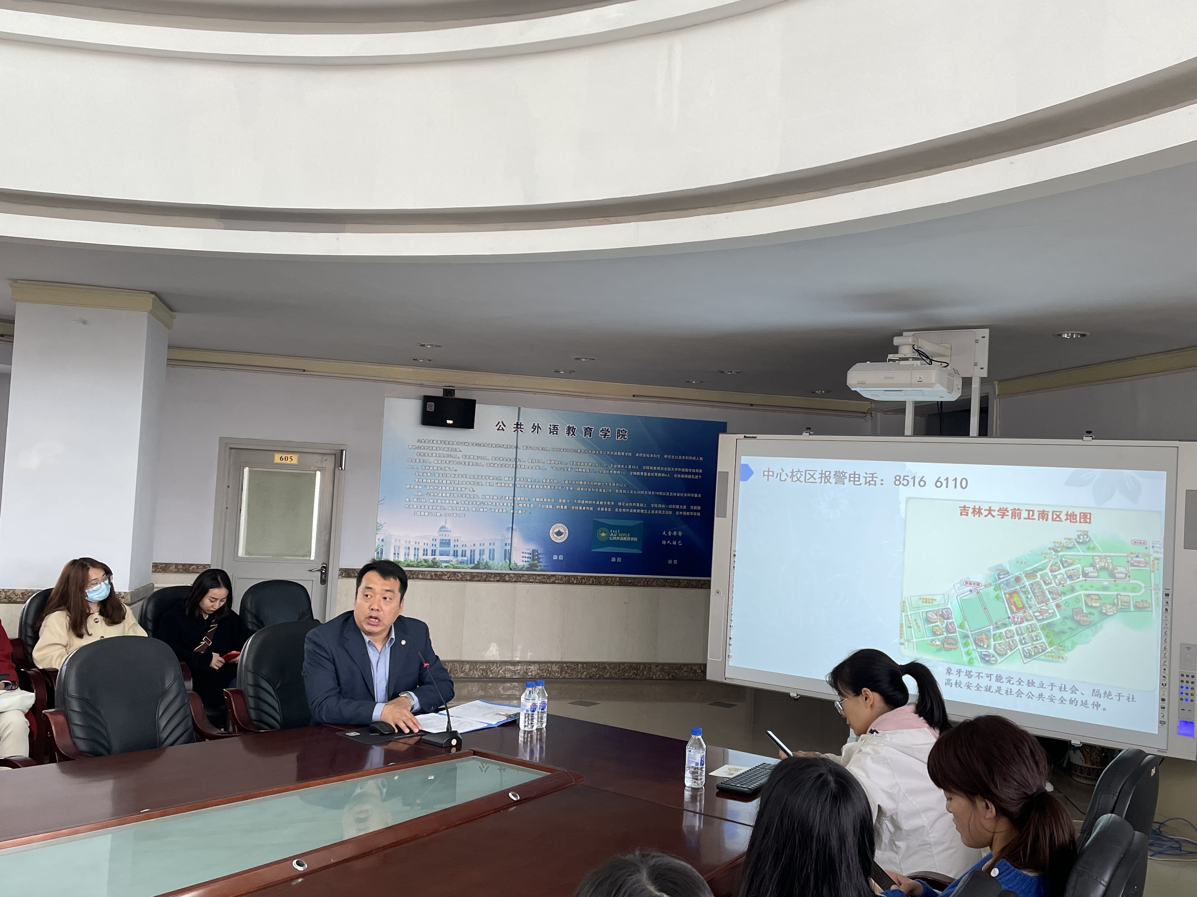 为了提高新生同学们的校园安全意识,公共外语教育学院于2021年10月15日14:00举办了以“提高校园消防安全意识,共建和谐校园”为主题的校园安全知识专题讲座,本次讲座由辅导员曾媛主持,保卫处调研科科长左学成主讲,2021级全体研究生新生参加。