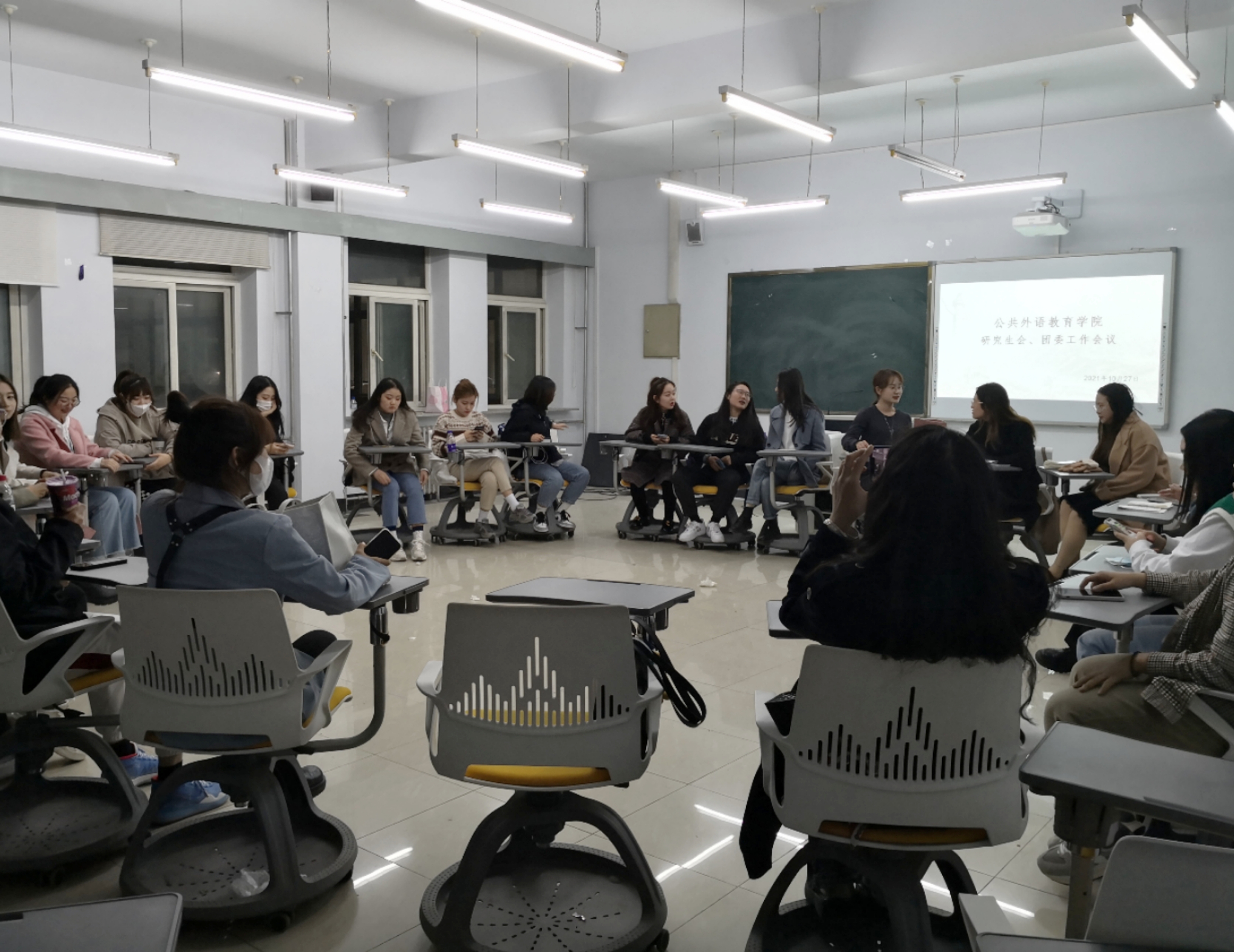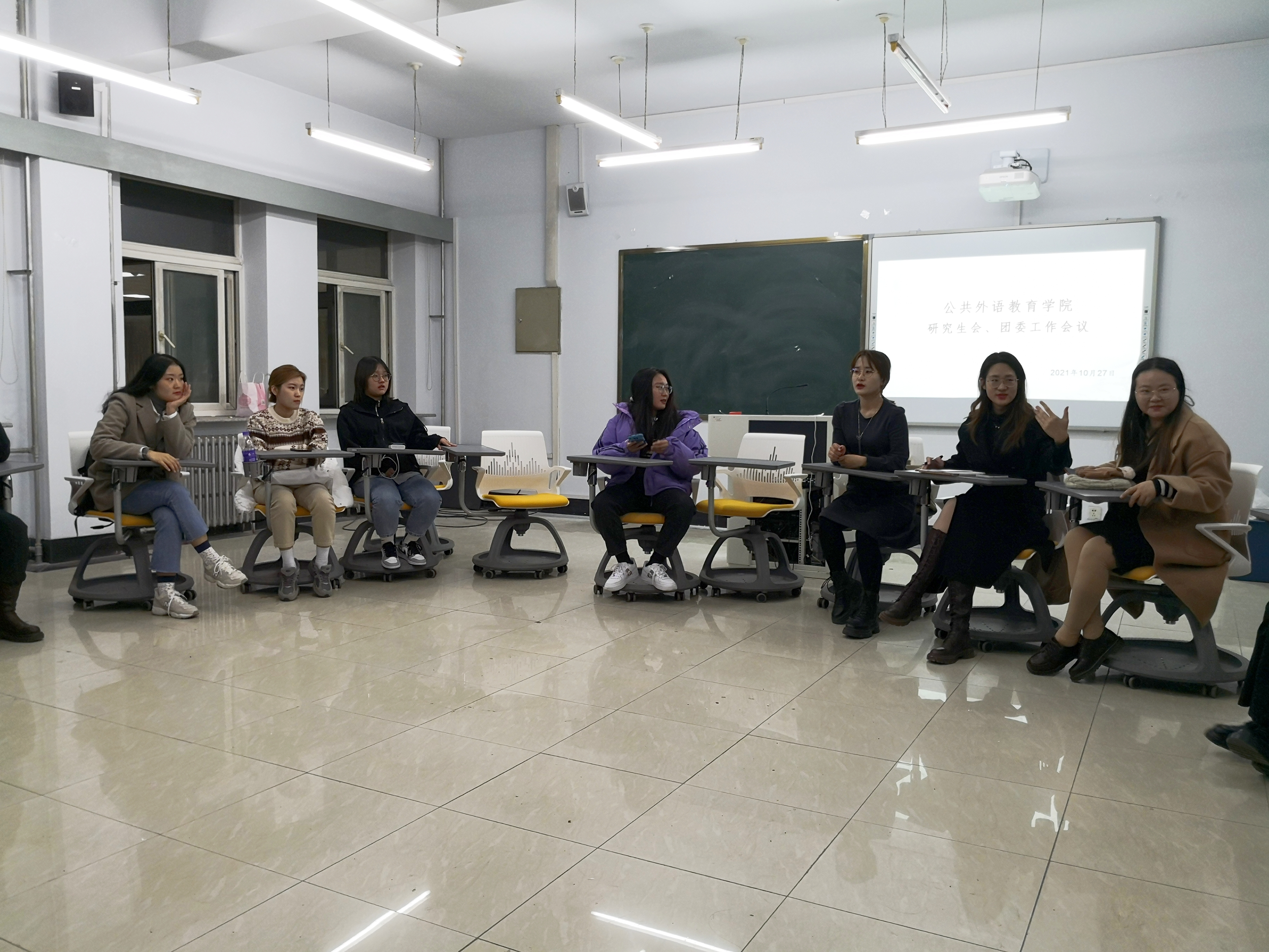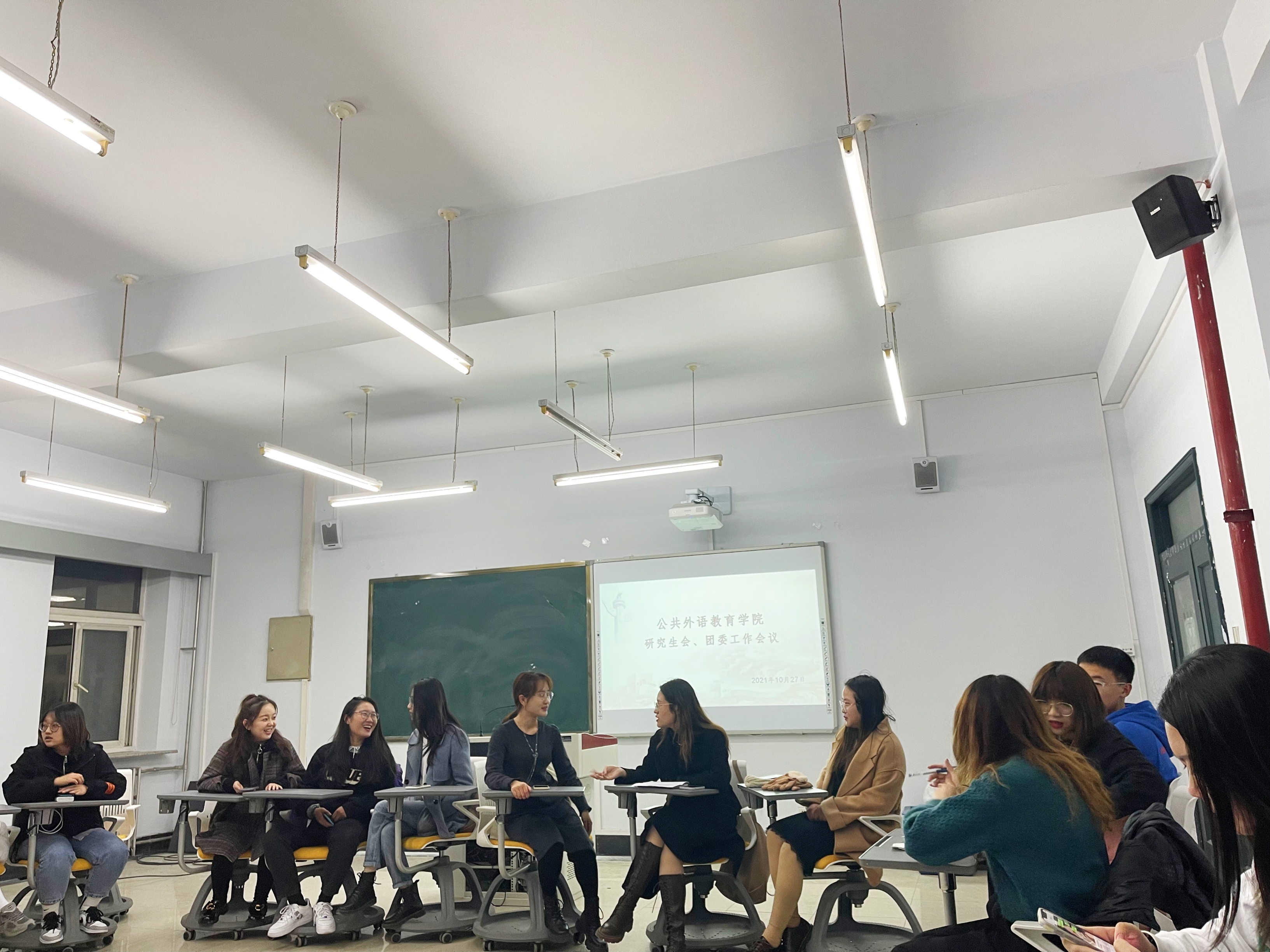 为了让2021级研究生会、团委新成员尽快熟悉工作内容,适应工作节奏,确保新学期各项工作顺利开展,2021年10月27日下午,公共外语教育学院在经信楼D401教室召开了学院研究生会、团委工作会议。本次会议由研究生会主席曲哲主持,团委副书记苑宇萌等2020级学生干部出席会议,2021级全体研究生会、团委成员参加会议。