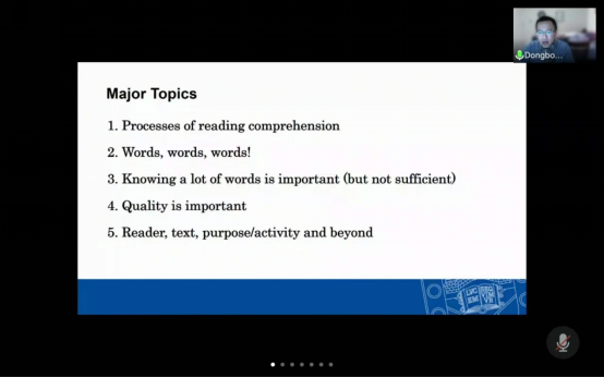 应乐竟官方网站邀请,国际知名应用语言学学者英国埃克塞特大学Zhang Dongbo教授,于2021年12月4日开展了研究生学术素养提升系列在线讲座,讲座研究生二语习得课程主讲教师李锡江教授共同主持,学院各年级博士生、硕士生参加了此次讲座。