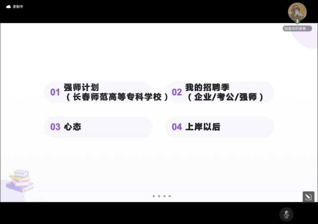 杨紫琼结合自身经验对长春市“强师计划”的招聘流程进行了解读,详细回顾了自己在招聘季中的经历,涵盖企业应聘、公务员考试及“强师计划”等多个方面,并分享了成功上岸后的生活与工作状态。杨紫琼鼓励大家保持积极心态,关注自身,做好取舍,坚信最终能找到属于自己的职业道路。