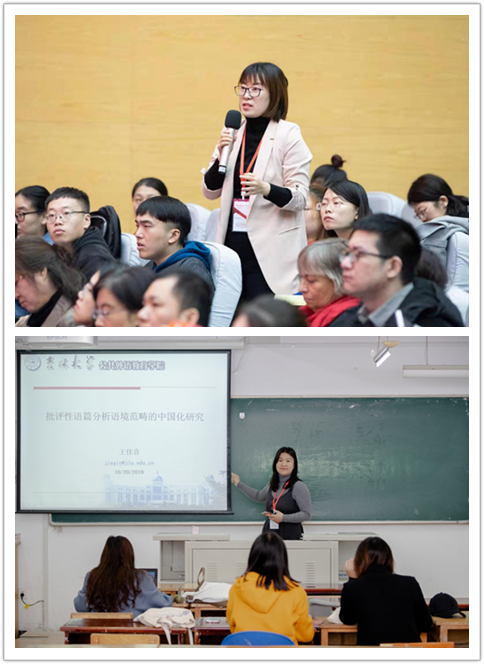 此外,与会代表在24个分会场(9个专题研讨会场、15个分组报告会场)进行了热烈讨论。讨论题目涵盖“期刊论文研究”、“声音与身份研究”、“写作研究”、“商务话语研究”、“语篇及体裁研究”、“数据驱动的教学研究”、“翻译与文学研究”、“交际意图实现与语篇研究类型”、“外交话语研究“等主题。与会代表纷纷表示收获很大。