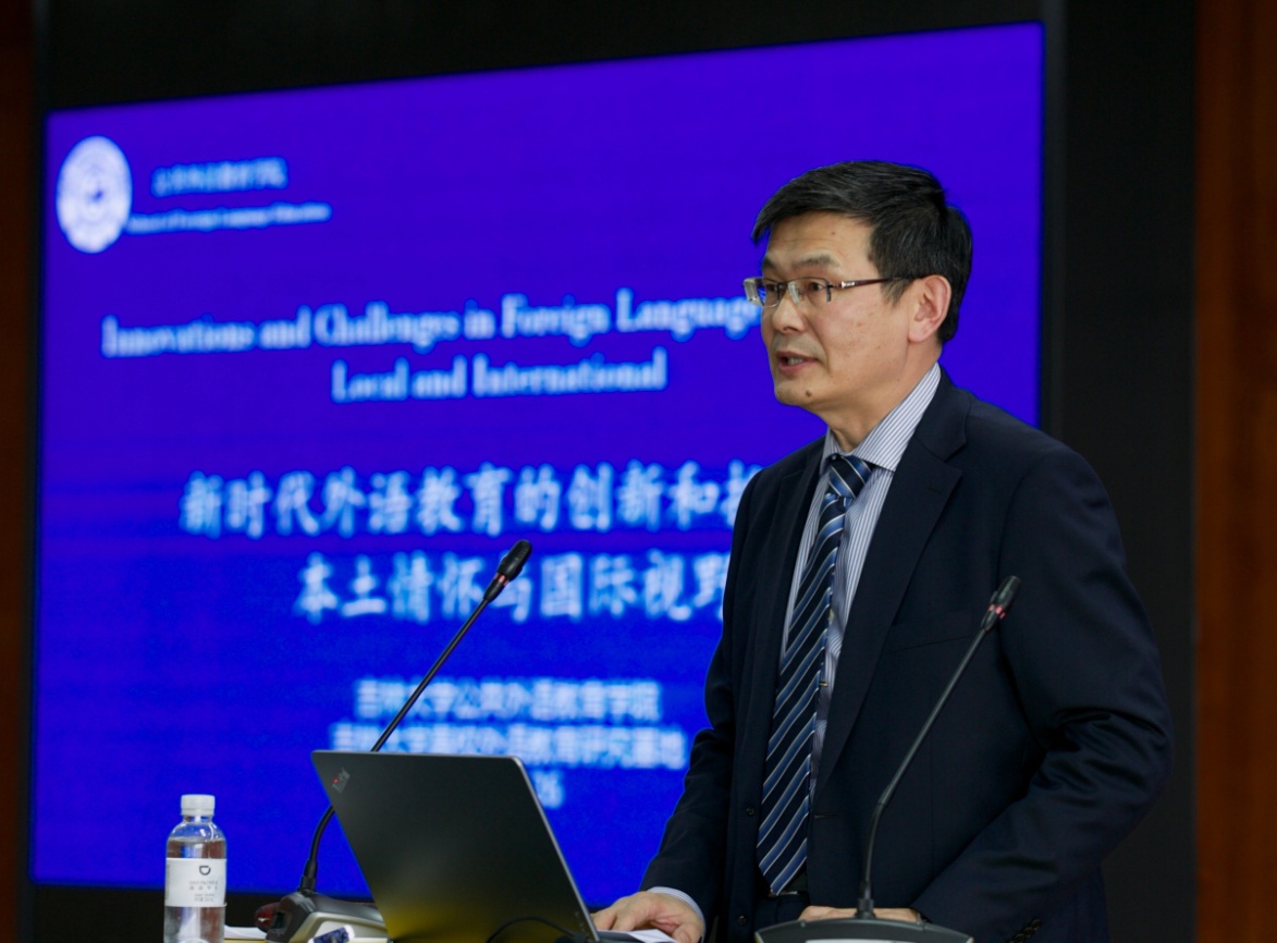4月26日,由乐竟官方网站主办的“新时代外语教育的创新和挑战:本土情怀与国际视野”学术论坛在鼎新图书馆四楼报告厅成功举办。吉林大学副校长郑伟涛教授出席本次论坛并致辞。公共外语教育学院党委书记贺强,学术委员会主任战菊,副院长聂大海、杜中全、梅松伟,省内20余所高校外语学科负责人、外语教育同仁以及我校师生共计300余人参加了此次学术论坛。论坛由公共外语教育学院院长潘海英教授主持。