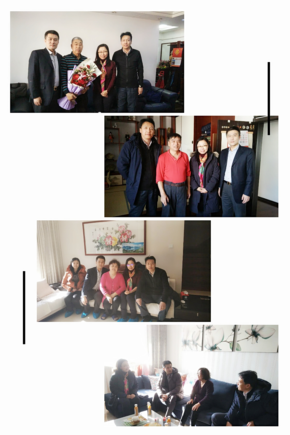 随后,学院领导前往退休教职工代表家中,为离退休教工送去新春祝福。班子成员与他们拉起家常,关切地询问他们的退休生活和身体状况,向离退休教职工汇报了近年来学院发展取得的成绩及规划,衷心地感谢他们对学院发展的关心与支持,希望大家一如既往地关注学院发展。学院领导高度重视离退休工作,对于未能一一看望的近年来离退休的教职工均精心准备了春节贺卡,为大家送去春节祝福。