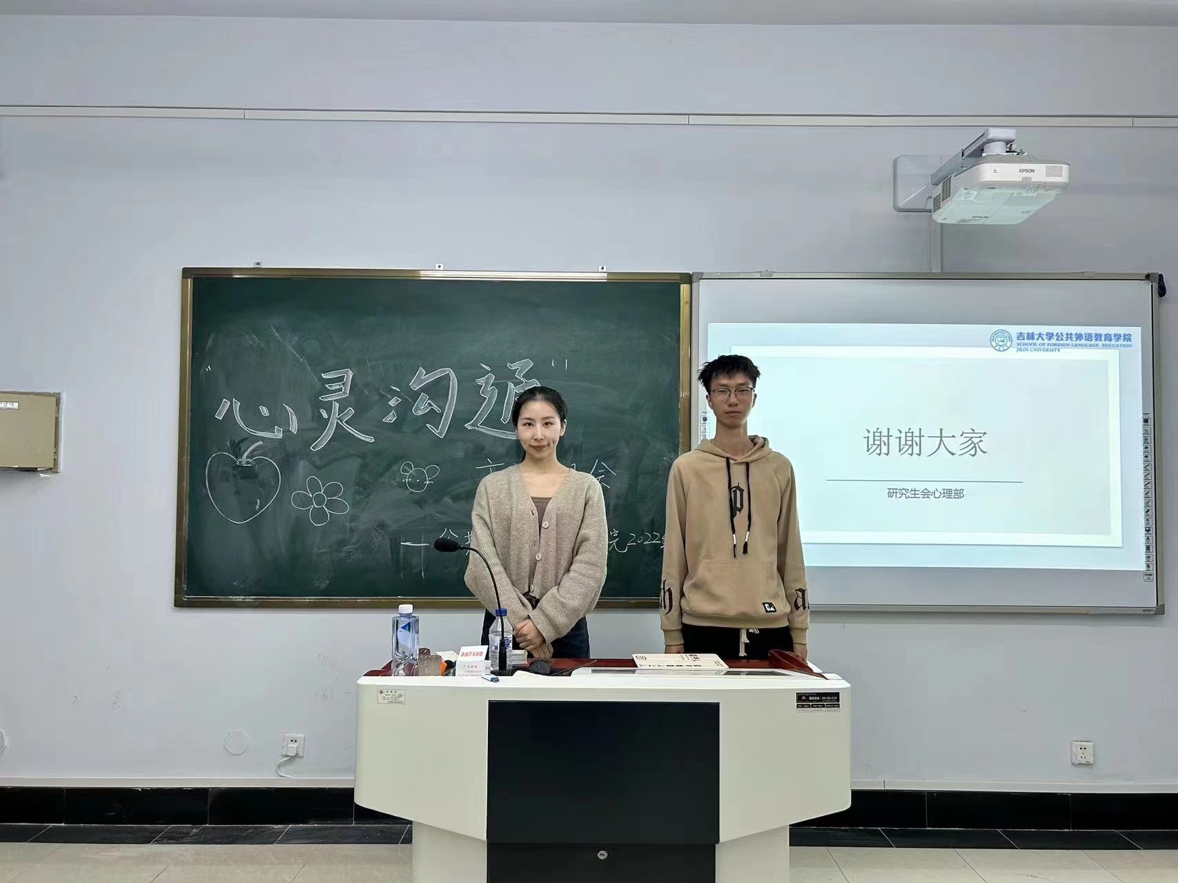 为促进同学间的情感沟通和友爱互助,号召广大学生关注自我及他人的心理健康,公共外语教育学院于2023年4月12日晚在敬信楼D403教室成功举办了“心灵沟通”主题班会,该活动由学生心理健康指导中心和学院心理辅导员指导,心理部成员佟傲主持,2022级研究生参与。活动内容丰富有趣,形式多样,有效缓解了同学们在学习和生活中产生的消极情绪与心理压力。