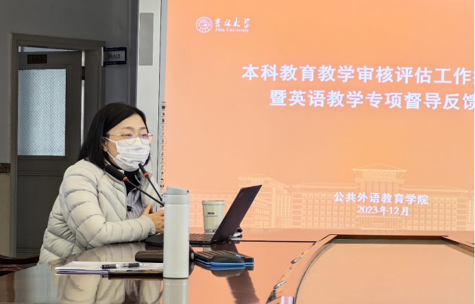 为深入贯彻《吉林大学本科教育教学审核评估工作方案(修订稿)》(校发〔2023〕176号),扎实做好本科教育教学审核评估迎评准备工作,根据《吉林大学学院本科教学评估工作方案(校教字〔2023〕70号)》安排和《关于开展本科教育教学审核评估第一轮学院自评工作的通知》要求,公共外语教育学院于12月5日在外语楼六楼报告厅召开英语教学专项督导反馈会暨本科教学审核评估工作推进会。我院领导班子全体成员出席会议,学院教学委员会委员、督学、各教研室主任及支部书记、各科室科长以及教学办全体成员参加了此次会议,会议由院长潘海英教授主持。